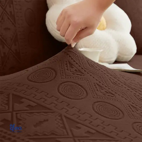 L-Shape Embossed Geometric Jacquard Sofa Cover - Dark Brown