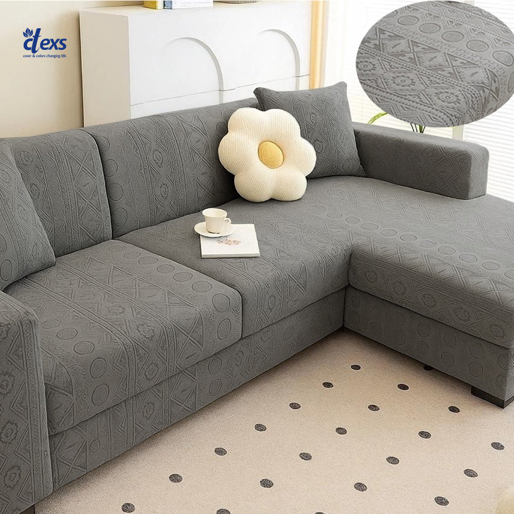 L-Shape Embossed Geometric Jacquard Sofa Cover